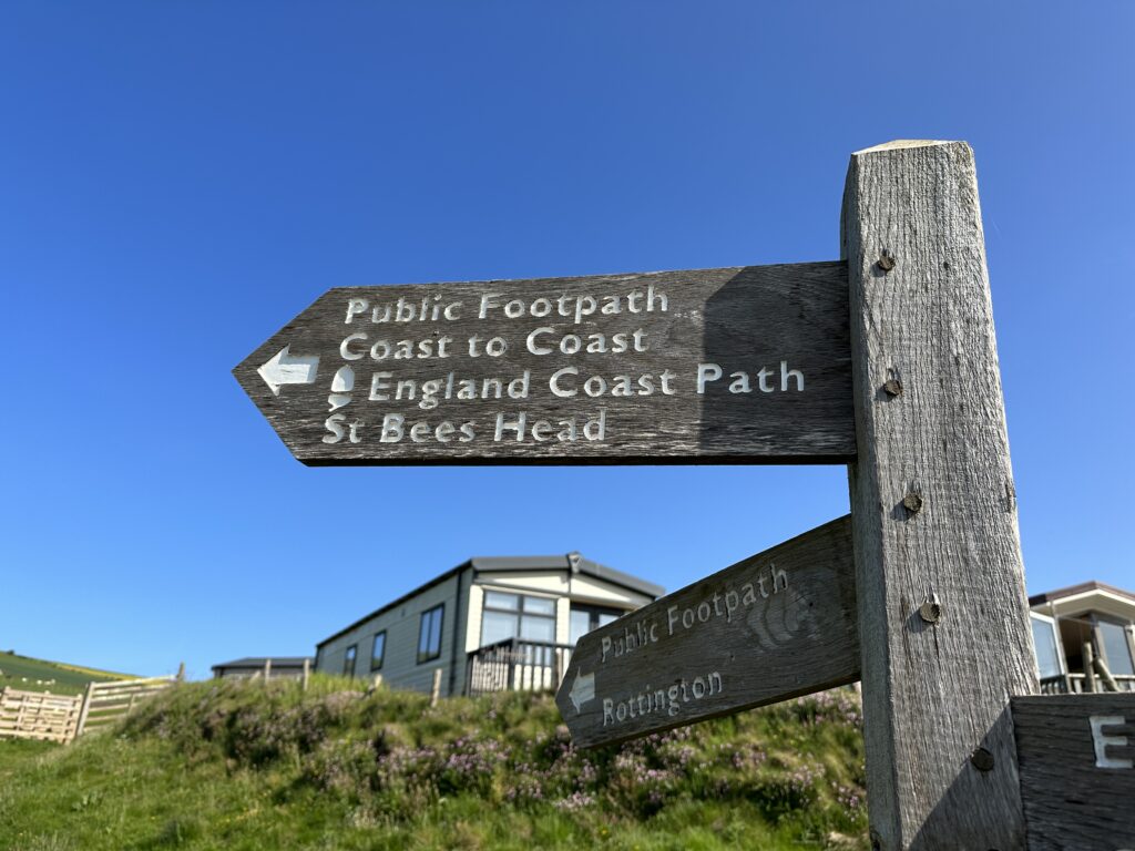 Day 1 of hiking complete! Today, we covered 10.03 miles. The weather was gorgeous and actually perhaps a little too warm for us. But, oh, the sunshine. We started off from the beach in St. Bee’s, the official start of the Coast to Coast Walk. Here is the team.