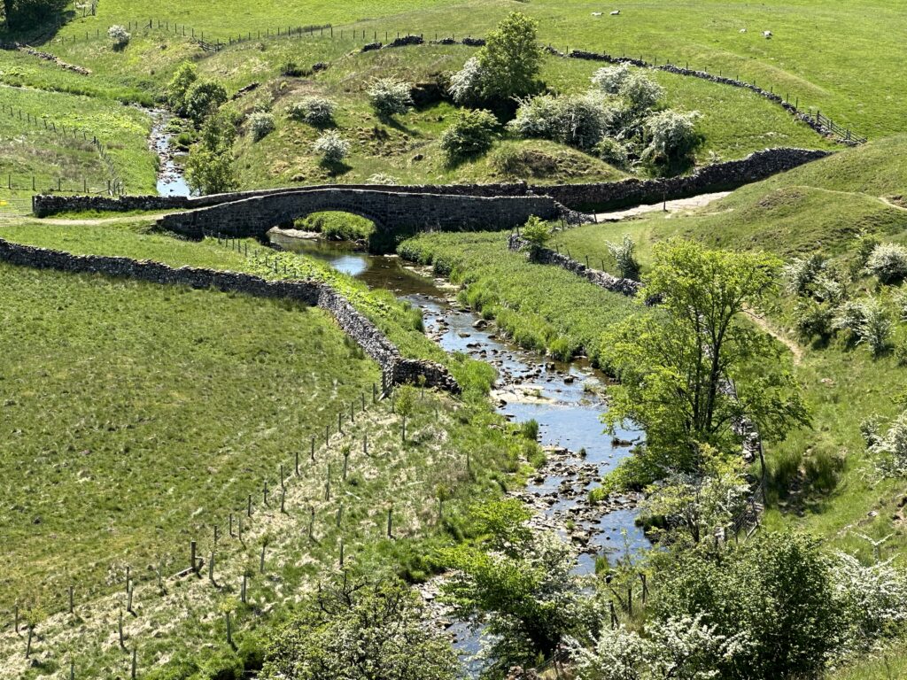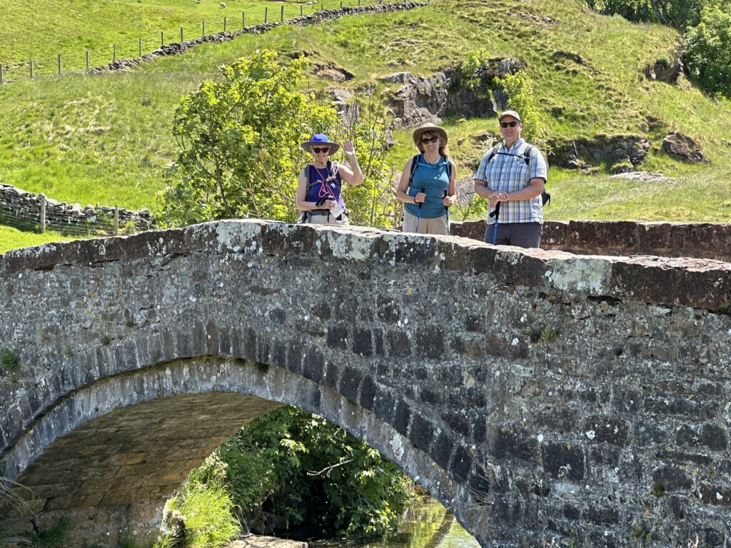 This is the Smardale Bridge over Scandal Beck, a famous Coast to Coast landmark. So, of course, we pose with the bridge. And Janet, with our hiking companions Elizabeth and Rick, pose again. It’s possible that taking pictures is now becoming simply an excuse to stop and rest. We don’t really look like we have already walked 9 miles, though do we?